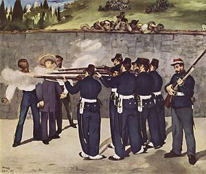 El Emperador de México, segundos antes de recibir las descargas del pelotón de fusilamiento, entregó una moneda de oro a los siete soldados del pelotón. Después proclamó: